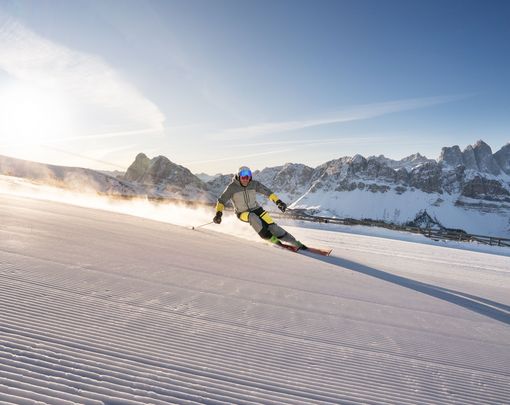 Ein einzigartiges ErlebnisDolomiti Superski vereint 12 erstklassige Skigebiete inmitten der atemberaubenden Dolomiten. Mit über 1.200 Pistenkilometern und modernsten Liften erwartet dich grenzenloses Skivergnügen in einer der schönsten Berglandschaften der Welt. Ob sanfte Hänge für Genießer, actionreiche Abfahrten für Profis oder legendäre Skirunden wie die Sellaronda – hier findet jeder seine perfekte Strecke. Dank eines einzigen Skipasses genießt du maximale Flexibilität und kannst jeden Tag ein neues Skigebiet erkunden.