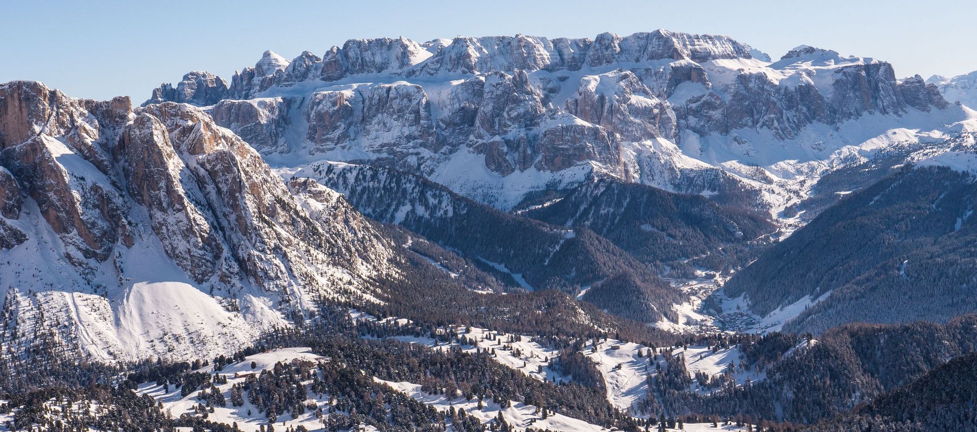 Die Grödner Ortschaft Wolkenstein liegt am Fuße des Sellastocks. Das Skigebiet Wolkenstein ist Teil des Skikarussells Sellaronda.